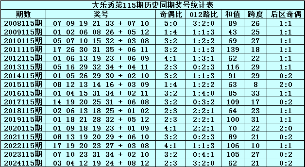 水镜体彩大乐透第2025115期历史同期奖号分析: