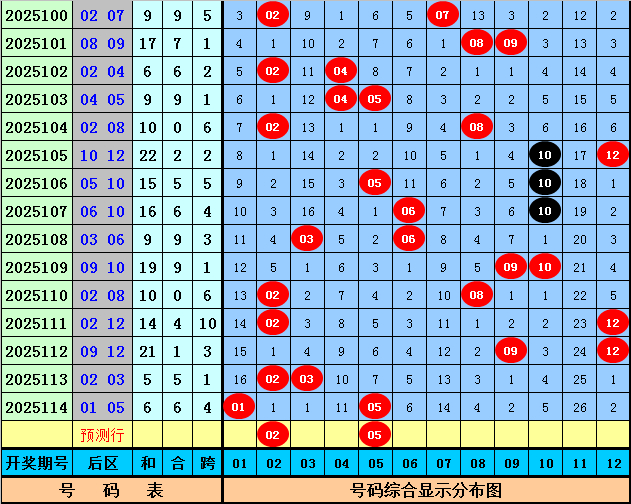 后区分析:在第115期历史同期开奖中,后区奖号全偶出现5次,一奇一偶出现10次,全奇出现2次,今年第115期后区预计出现一奇一偶组合,看好两码02和05。